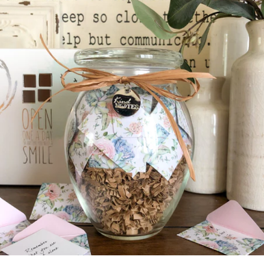 Our Blooming Garden Jar of Notes is filled with messages that inspire hope and healing. This charming glass jar contains 31 thoughtful notes that deliver kindness, gratitude, and love.