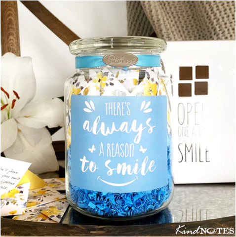 Immerse yourself in the glory of love and joy with our Reason to Smile Jar of Notes – a special gift for your anniversary celebration. Being made with care and attention to detail, this jar is not only a container, it's a living memory of all the happy days you've had together. Each note is written especially for her to make her day and remind her of all the love you have for one another. The bright colors and touching messages on this jar are sure to make your anniversary one to be treasured forever.
