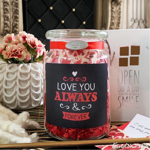 KindNotes was created with a heartfelt intent to help people express emotions and spread kindness through thoughtful messages. Our exquisite craftsmanship of the Happy Valentine's Jar of Notes is what sets it apart. Each glass jar is carefully packed by hand, to ensure that every envelope is placed perfectly for an exquisite display.